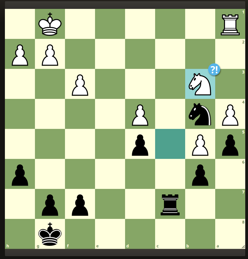 Nb3?! My rook can now enter on c3 and the game ends soon after, with my knight and rook combining to neutralize his pieces.