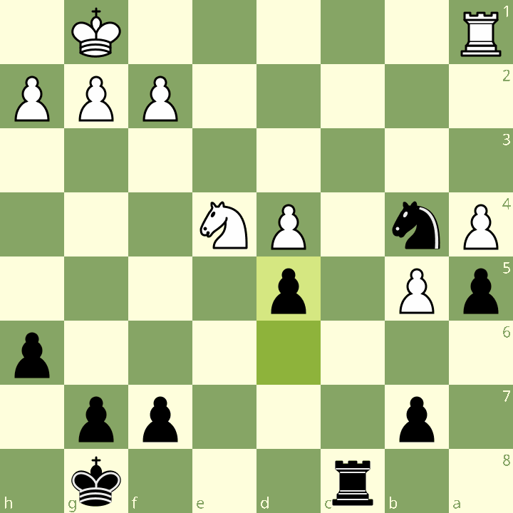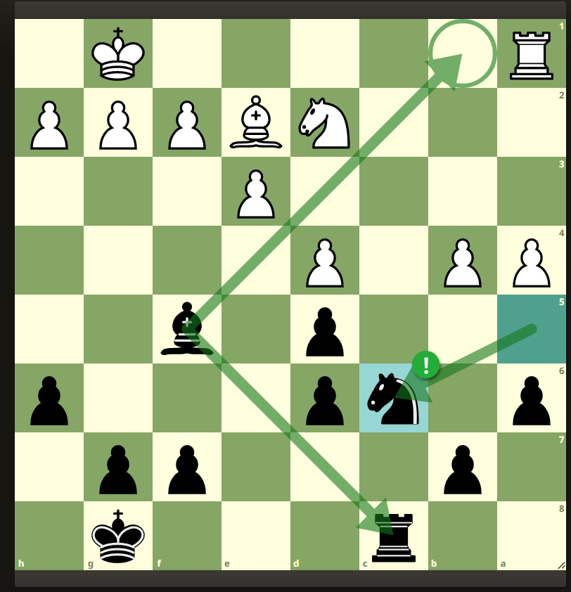 The knight is simply misplaced, right? If it doesn’t move, he just takes it. If it tries to jump to c4, I drop a pawn (simple math, three attackers two defenders), the d2 knight guards the b3 square — and the rook on c6 occupies what was originally the knight’s only retreating square.